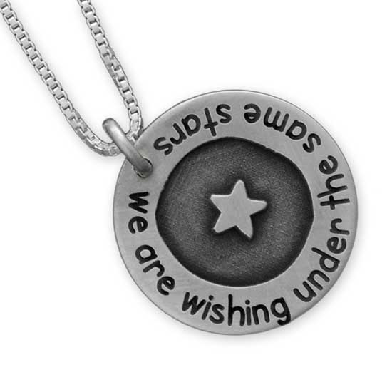 I am happy to announce our new Etched Wish Necklace. This was the first etched charm I created, using a new etching technique that we developed here at Heart On Your Wrist. This sweet little charm is created by taking a sterling silver oval charm and adding the h and -drawn d and elion using our etching technique. A tiny “Wish” is also etched onto the charm. We then patina the charm and h and -polish it so the raised parts of the charm shine and contrast with the dark background. The result is beautiful and I’m happy to offer one to a lucky winner of this giveaway! Good luck…please see below to enter. The winner will be announced on Sunday.